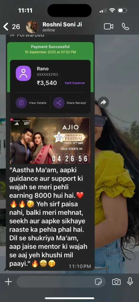 Join over 1000+ students and housewives who have successfully built their income online with Aastha Porwal
